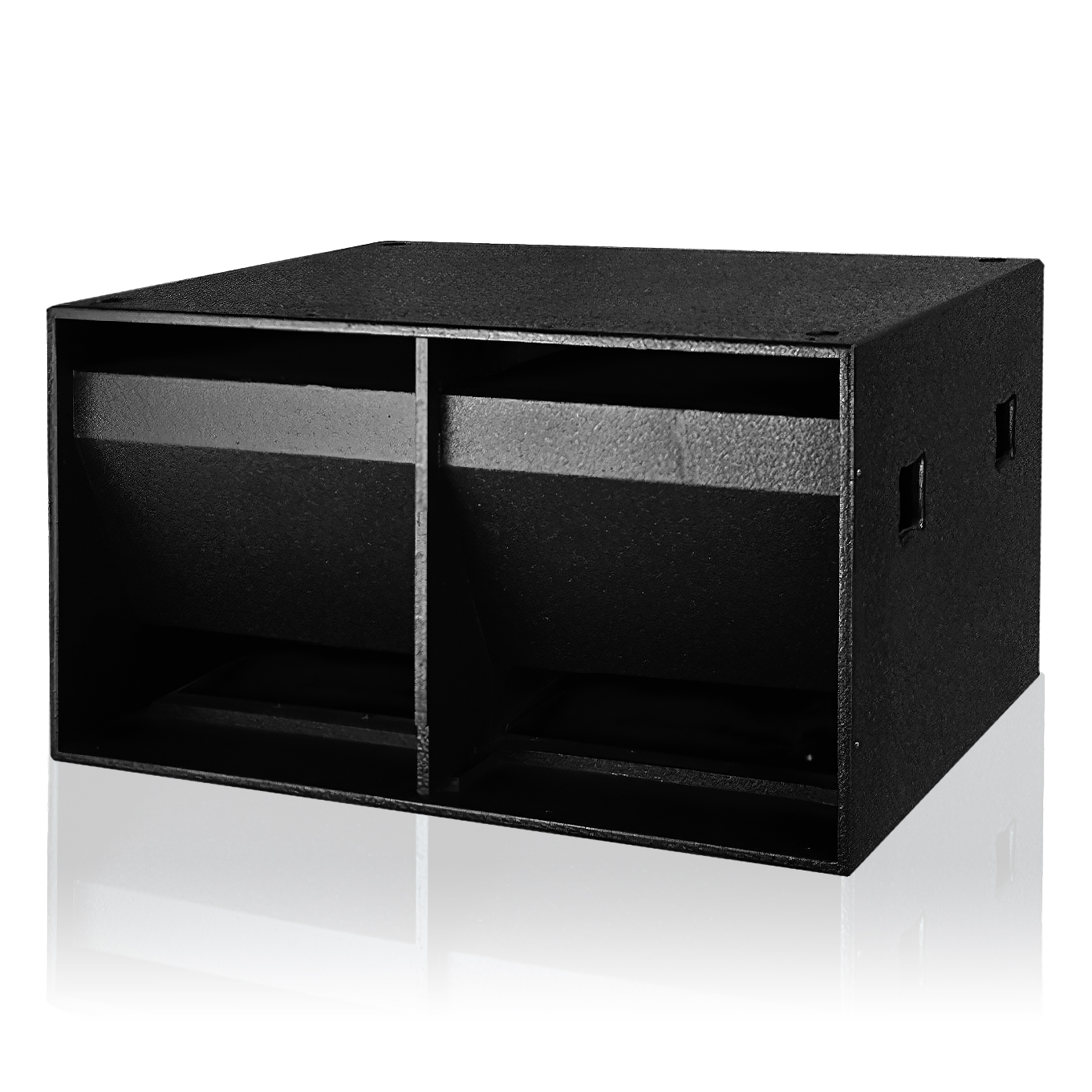 采用2只18英寸(465mm)專業(yè)超低音單元; 2. 采用高成本鋁材鑄造,具備剛性高、無諧振、重量輕、散熱快的優(yōu)點; 3. 錐盆采用高強度復合紙振膜,三道布折環(huán)涂付阻尼材料,并增加波形加強筋,減少分割震動造成的失真,具有平直的頻率曲線; 4. 低頻單元采用直徑100mm音圈精選Kapton材料骨架及矩形截面無氧銅導線注入液磁冷卻,具備:磁隙小、效率高、,重量輕、耐高溫、散熱快特點; 5. 耐高溫NOMEX纖維精制定心支片,滿足高聲壓級輸出時單元高動態(tài)低失真度; 6. 樺木夾板箱體采用迷宮式導向設計; 7. 外飾黑色晶點漆,硬度高,不易磨損; 8. 箱體設置全頻箱支撐孔; 9. 線路連接采用NL4插頭; |